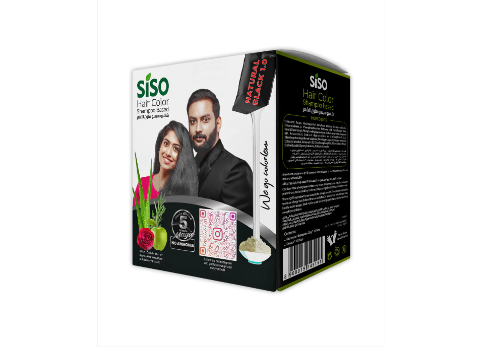 Imagine not delaying your hair-colour session because of a busy schedule. The Siso 5 Min Hair Colour Shampoo transforms your hair in just five minutes. This dual-chamber sachet formula blends colour & active ingredients into a shampoo application — simply apply, massage for 3-7 minutes, rinse and reveal natural-looking black colour. Enriched with Noni, Rose & Ginseng extracts, this no-ammonia, paraben-free, mineral-oil-free, silicone-free formula provides 100% grey coverage with a shiny, healthy finish.