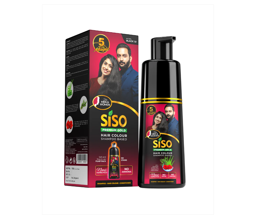 Revamp your hair colouring experience with the Siso Premium Gold Hair Colour Shampoo (180 ml). This advanced formula delivers rich, natural black colour and 100% grey coverage in just 5 minutes. Free from ammonia, parabens, mineral oil & silicone, it’s designed for gentle and effective application for both men and women.