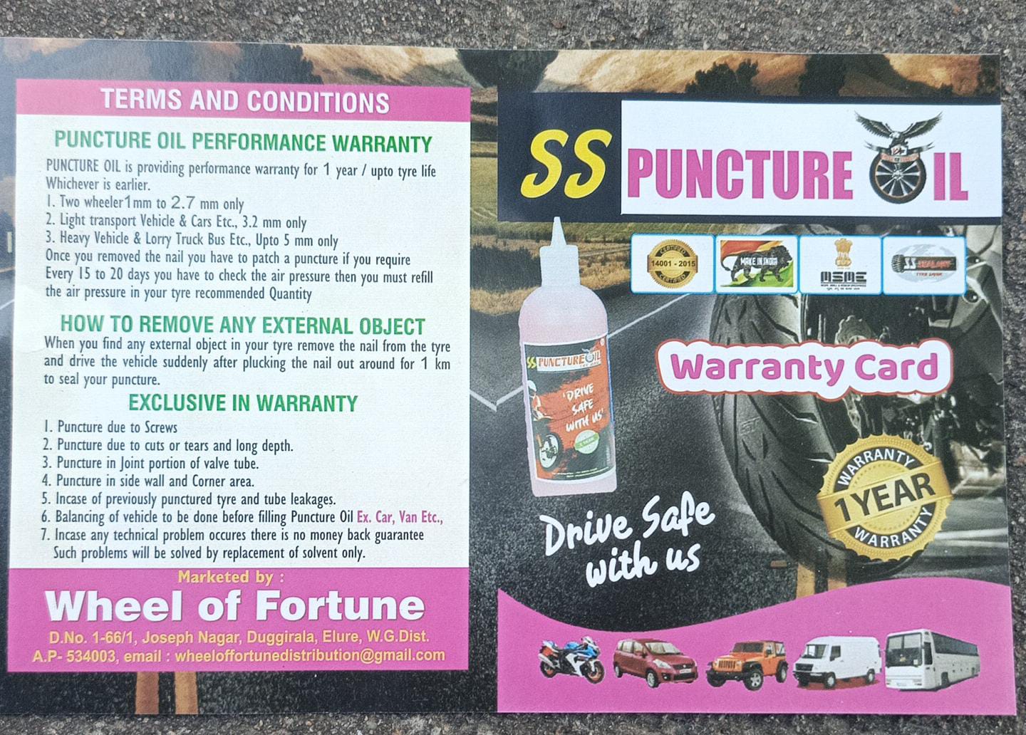 🚗 SS Puncture Oil – Tyre Sealant With 1 Year Warranty | Automatic Puncture Sealing for Bikes, Cars, Autos, Buses, Trucks