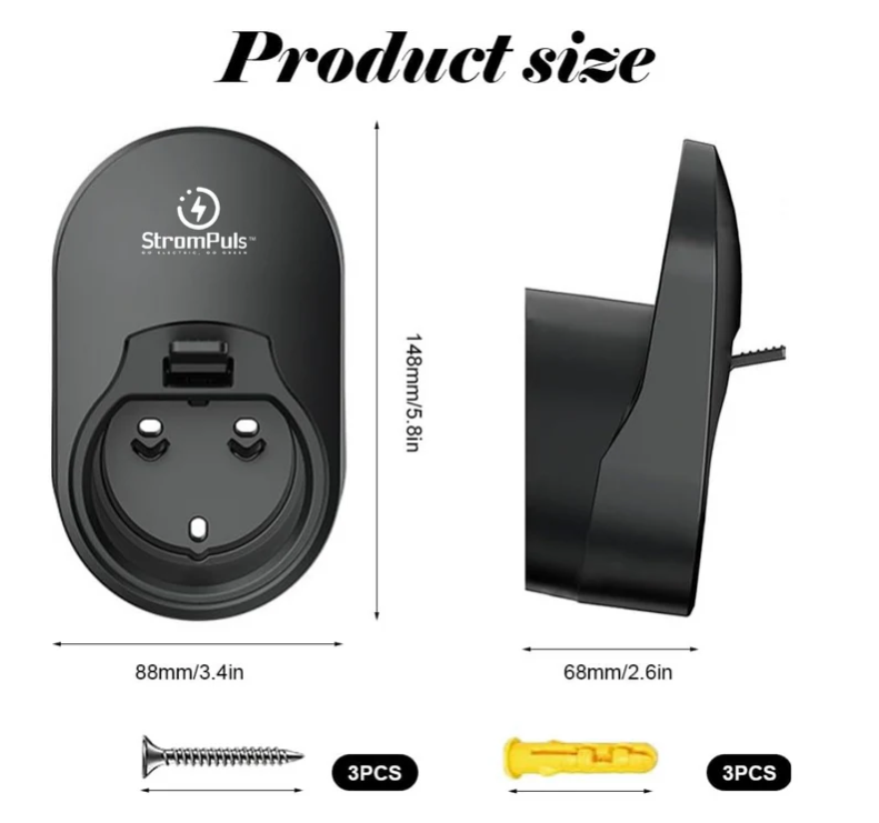 Keep your EV charging station organized, safe, and efficient with the STROMPULS® EV Charging Cable Holder with Wall Socket/Holster. Designed for durability and ease of use, this premium-grade holder ensures your charging cable stays neatly in place while protecting the plug from dust, dirt, and water.